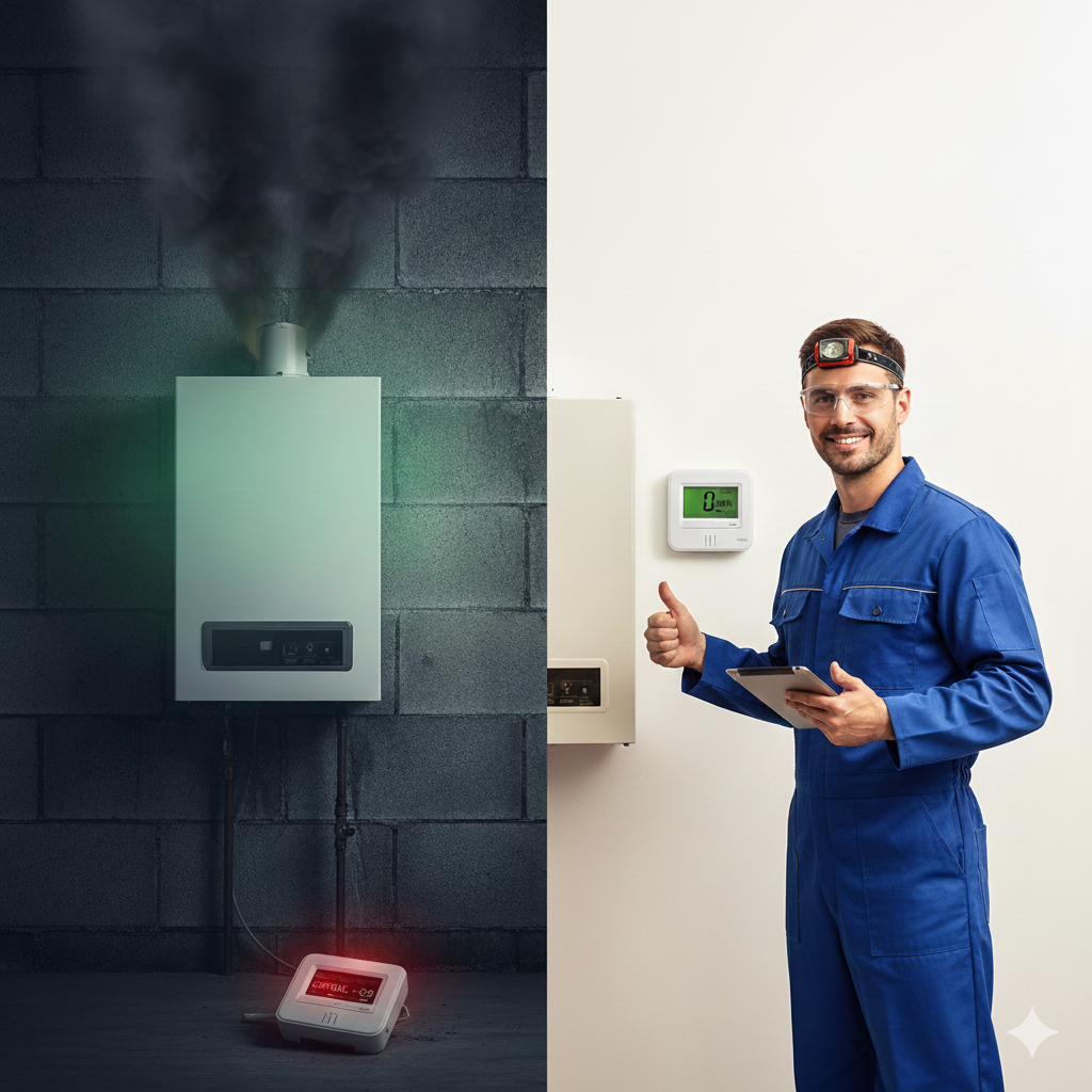 A tökéletlen égést okozhatja eltömődött égőfej, szennyezett hőcserélő, elégtelen levegő-utánpótlás vagy hibás ventilátor. Ezek a hibák idővel súlyosbodnak, és akár életveszélyes koncentrációhoz vezethetnek. A felülvizsgálat során műszerekkel mérem az égésterméket és ellenőrzöm, hogy a készülék megfelel-e a biztonsági határértékeknek.